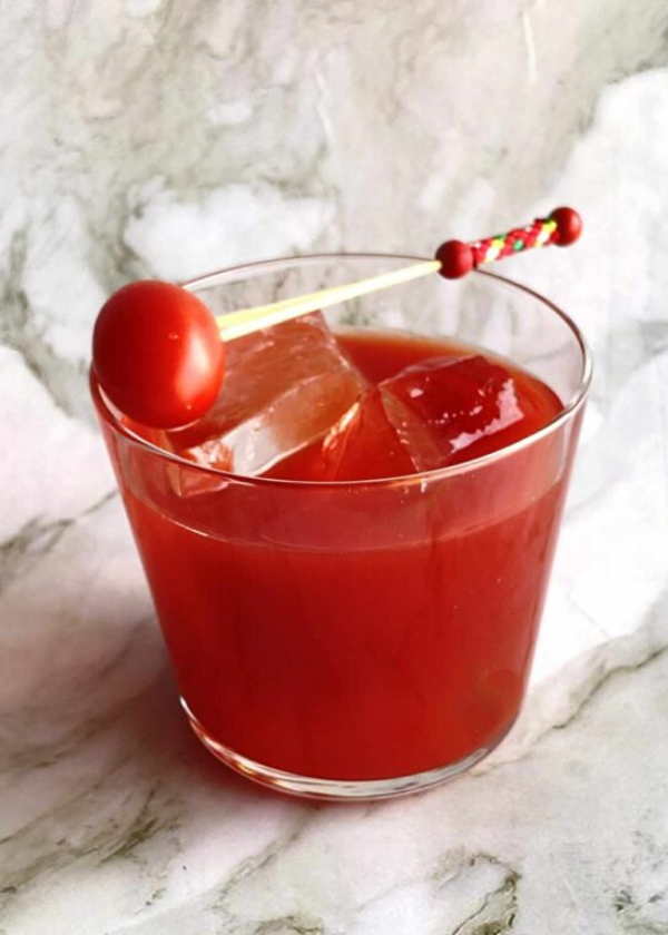 トマトに魅せられたクラシックカクテル 。世界で愛されているクラシックカクテルの「ネグローニ」の骨格をそのままに、本来のレシピのスイートベルモットの代わりに「甘くておいしいトマト」が描く新しい赤の表情。