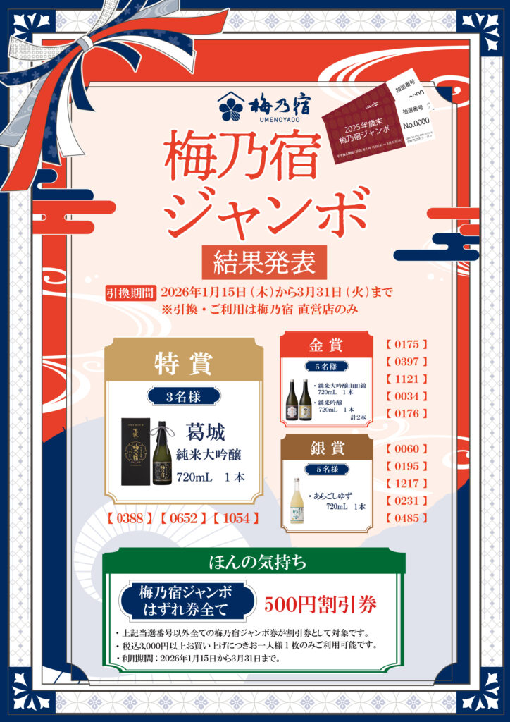 【直営店】「梅乃宿ジャンボ」当選番号のお知らせ