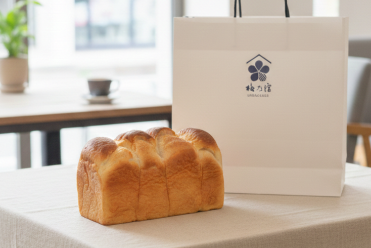 梅乃宿酒造の酒粕を使用した食パンです。酒粕がふんわり香り、湯種製法ならではのもっちり食感が楽しめます。