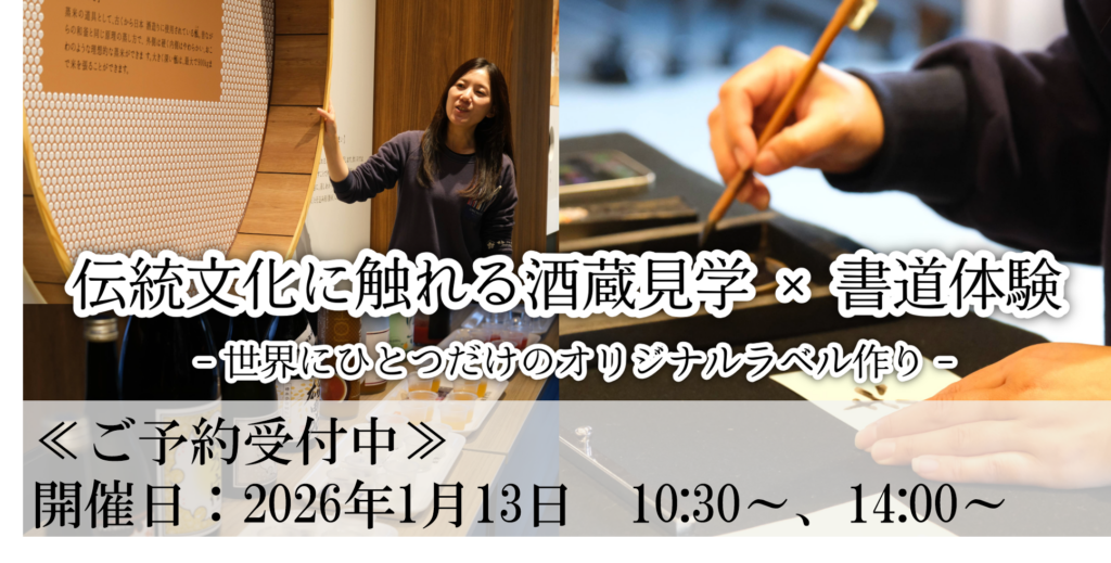 2026年1月13日に体験イベント「伝統文化にふれる酒蔵見学×書道体験」を開催します。